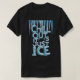 En grafisk design med frasen "Ut", dess Just Ice skriven i 3D, isig brev, med bilder som droppar från dem. Bilden väcker en känsla av coola och lugn, perfekt för vinter eller helgdag.