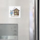 Kylmagnet i kvadrat med ett berg, ett par blå skidor och en kniv. I texten står det Schweiz, men det står Schweiz fritt att ändra det. © ArianeC Illustrations-Alla höger reserverade