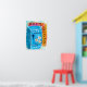 En roligt och ett färgstarkt blått kylskåp med blommor och skriven text i stor tjock painterly stil.