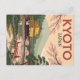 vintage resor poster för Kyoto, Japan i en reflektor stil. En serenscen av Kinkaku-ji (Golden Pavilion) som reflekterar i en stillastående damm, omgiven av lush grönt träd och körsbärsblommar i mjuk rosa. Lägg till en mistig Mt. Hiei i bakgrunden. Använda fet konturer, varma solljus och traditionell japansk typografi för staden namn. Lägg till några personer i traditionella kimonos som går på en röd bågbro."