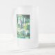 Frosted Glass Beer Mugg med Gustav Klimts oljemålning Church i Kassone (1913). En vacker italiensk kyrka är omgiven av grönt träd på blå vatten strand. En fantastisk gåva till Art nouveau älskare och österrikiska konstentusiaster!