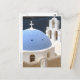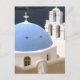 Vit tvättat blå kuperad kyrka på ön Santorini Greece