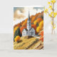 En liten vit kyrka uppe på backe med berggrund, Höst löv och Fall Träd. Skicka höstvälsignelser till dig.