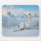 Kyrka täckt i snö med berggrund musmatta
