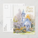 Fira påsk med tidlös elegans och vårens mjuka skönhet. Detta Vårblommor Kyrka Scen Glad Påsk Semester Postkort innehåller en delikat akvarellillustration av en charmig landsbygdskyrka omgiven av blommande blommor och frisk grönska. Konsten är gjord i en lugn pastellpalett av mjuk blå, rosatonad rosa, varm gyllengul, salvia grön och mjuk elfenben, vilket skapar en förfinad och fredlig säsongsestetik.