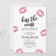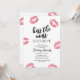Denna roliga och flirtiga systerfest-inbjudan är perfekt för alla blivande brudar som är redo att släppa loss och festa innan den stora dagen! Inbjudan visar en bild av rosa läppar med orden "Kyss Fröken Adjö". Den är perfekt för alla systerfester, möhippor eller tjejveckor!