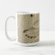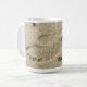 Två fotavtryck i sanden justeras som i en kyss. Anpassa kaffet mugg med namn i älskare för en verkligt unik och romantisk bröllop eller jubileumsgåva. Den här bilden är originalbadfotografi av JLW_PHOTOGRAPHY.