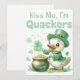 Få dina gäster att gå i extas med denna lekfulla inbjudan som visar en ankunge utklädd till tomte, en gryta med guld, en fyraklöver och texten "Kyss mig, jag är knäpp". Perfekt för St. Patricks dag-firanden eller andra lyckotematiska tillställningar.