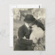 Det här är ett underbart vykort med ett gammalt foto av två älskare kyssar. Väldigt romantiskt.