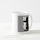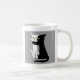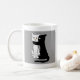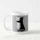 En rolig kattmugg för kattälskare, muggen visar en illustration av en gullig svart katt som kysser ett rättvist som gullig vitkatt. Designen baseras på en vintagefranskvykort.