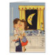Gullig retro konstverkvisning en make och en fru som kysser stunder som gör disk. Den le växande månen, i sett i fönstret.
