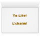 Den lyckönsknings- hebrén formulerar, "L chaim", visas i hebréiska tecken såväl som i transliteration mellan två symboliska unga träd