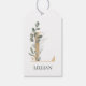 Brev L monogram blommigt. Brev L i guldbrun struktur accentuerad med grönt vattenfärgade löv, blommor och blommar från guld. Personlig med namn i matchande teckensnitt.