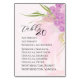 Gorgeous hand painted sheer pink blush bow and bouquet on an artist designed pink and bridal white garden lace background with contrasting classic black typography. Very romantic and chic, this Coquette inspired Table Assignment card welcomes your guests in style. Up to ten guests per table.