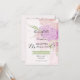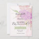 Underbar handmålad Coquette-stil genomskinlig rosa båge och brudbukett på blekrosa bakgrund med en handillustrerad rosenträdgårdsspetsöverlägg för att framhäva din Save-the-Date. Accenterad med klassisk svart modern typografi. Mycket romantisk och chic, njut av vår koordinerade Coquette-inspirerade Bröllopssvit.