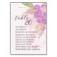 Gorgeous hand painted sheer pink blush bow and bouquet on an artist designed pink and bridal white garden lace background with contrasting classic black typography. Very romantic and chic, this Coquette inspired Table Assignment card welcomes your guests in style. Up to ten guests per table.