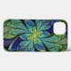 Faux nedfläckad glass löv av grönt och turkos ram en centralblomma i blå och lila nyans.