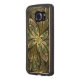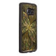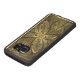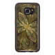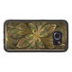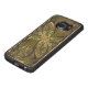 Ta copyrightt på © 2014, Susan Wallace. Abstrakt målat glasslöv skuggar in av grönt- och gultramen en centralblomma av guld i denna intricately specificerade design.