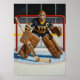 En formidabel Art Deco-oljemålning som skildrar en kvinnlig ishockeymåltavla med låg redo, hennes stiliserade geometriska form som är innesluten i svart och guld och som definieras av den skarpa, dramatiska kuraroskuron av rosbelysning.