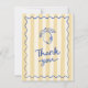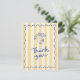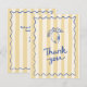 Det här tackkortet är perfekt för en bröllosdusch med italiensk tema. Den har en gulrandig bakgrund, snirklig kant, handritad citrondesign och "tack" i en kladdig typsnitt. Baksidan av kortet är redigerbar med ditt eget meddelande.