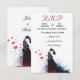 Denna elegant och konstnärliga design blandar romantik med en modern, uttrycksfull design. Det centrala är ett pars silhuett med passionerat sinne, symboliserar kärlek och enighet. Bilden har en stänk-effekt i kreativet i skuggor av djupblått, rött och svart, vilket ger en contemporary och en dynamisk tryckning. Spridda hjärtan förbättrar romantiken, medan snyggtens kalligrafteckensnitt ger en tidlös elegans. Layouten är ren men ändå uttrycksfull och skapar den perfekt för par som vill ha ett unikt, något okonventionellt och konstnärligt bröllop-tema. Bilden kombinerar traditionell sofistikering med en färsk, modern estetik, skapar den lämplig för kreativ, bohemi eller romantiskt bröllop.