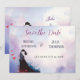 Denna elegant och konstnärliga design blandar romantik med en modern, uttrycksfull design. Det centrala är ett pars silhuett med passionerat sinne, symboliserar kärlek och enighet. Bilden har en stänk-effekt i kreativet i skuggor av djupblått, rött och svart, vilket ger en contemporary och en dynamisk tryckning. Spridda hjärtan förbättrar romantiken, medan snyggtens kalligrafteckensnitt ger en tidlös elegans. Layouten är ren men ändå uttrycksfull och skapar den perfekt för par som vill ha ett unikt, något okonventionellt och konstnärligt bröllop-tema. Bilden kombinerar traditionell sofistikering med en färsk, modern estetik, skapar den lämplig för kreativ, bohemi eller romantiskt bröllop.