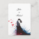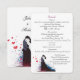 Denna elegant och konstnärliga design blandar romantik med en modern, uttrycksfull design. Det centrala är ett pars silhuett med passionerat sinne, symboliserar kärlek och enighet. Bilden har en stänk-effekt i kreativet i skuggor av djupblått, rött och svart, vilket ger en contemporary och en dynamisk tryckning. Spridda hjärtan förbättrar romantiken, medan snyggtens kalligrafteckensnitt ger en tidlös elegans. Layouten är ren men ändå uttrycksfull och skapar den perfekt för par som vill ha ett unikt, något okonventionellt och konstnärligt bröllop-tema. Bilden kombinerar traditionell sofistikering med en färsk, modern estetik, skapar den lämplig för kreativ, bohemi eller romantiskt bröllop.