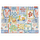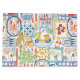 A playful Mediterranean-inspired pattern featuring a yellow scooter, lemons, pasta, seafood, tiles, and Italian lifestyle elements with the phrases “La Dolce Vita” and “Ciao.” The soft pastel palette and travel motifs capture the relaxed charm of an Italian summer.