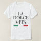 Upplev äkta italiensk stil med denna t-shirt för manar i "La Dolce Vita". De djärva svarta bokstäverna och grönt- och rödaccenterna betalar ett erkännande av Italiens nationella färg och det söta livets ideologi. Den här skjortan är utformad för bekvämlighet och tidlös blomning och är en perfekt för resor, vardaglig bära, eller gåva till alla som kärlek italiensk kultur, positivitet och klassisk design.
