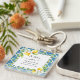 Nyckelkedjan La Dolce Vita Mediterranean bachelorette helg. Fira din Medelhavsbachelorette helg med dessa anpassningsbar nyckelkedjor, designade för att fånga "La Dolce Vita"-andan. Anpassa varje nyckelkedja med dina detaljer. Konstruktionen har en pulserande blå och gult panel gräns som påminner om kusten i Medelhavsområdet. Grenar har placerats på ett konstlat sätt och sprider sig med citroner av gult och blommar ram i de övre lämnat hörnen och högerna i grund, vilket tillför en liten bit elegant stollig. Denna kombination av citroner och blommigtar är perfekt för "sötlivets" värme- och citrusfärskhet.