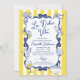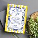 Celebrate love the Italian way with this La Dolce Vita Whimsical Italian Bridal Shower Invitation—a charming blend of elegance, romance, and Mediterranean flair. Featuring cheerful yellow stripes, classic blue toile-inspired illustrations, and playful details like lemons, lobster, bows, and coastal icons, this invitation captures the essence of a sun-soaked Italian celebration.