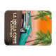 La Jolla Cove California-reseaffisch med en vacker gammal retrobil med en hög svällande handflatan träd.