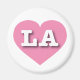 Den här magneten har ett pulserande rosa hjärta som innehåller det feta, vita, övre fodral brev LA, förkortningen officiell för Louisiana, den pelikanska staten eller Los Angeles, staden änglar.