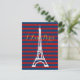 En illustration av den röda och blå stripbildens bakgrund med Eiffel torn i ord I kärlek Paris