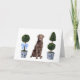 De här hälsningskorten har en vattenfärg porträtt i ett brunt chokladlabbet sitta i mellan två chinoiserie stil-topiarier.