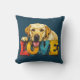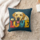 Celebrate your puppy love with this comfy throw pillow. The retro-inspired illustration features a beautiful yellow Labrador Retriever resting on block letters spelling LOVE. Channel more cuddles and slobbery kisses with this this teal blue throw pillow. Woof | Matching throw blanket available in store.