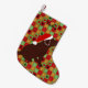 Den unika och roliga designen för illustrationen för den Labrador retrieveren skapade vid Naomi Ochiai från Japan. Oskyldigen tittar chokladLabrador valpen sitter med en Santa hatt. Färgrik jultäckebakgrund tillfogas för julhelg. Den är trevlig för chokladLabrador fläktar. Design för labbvalpsilhouette. Du kan skräddarsy text och mer!