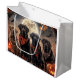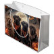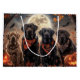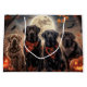 Släpp upp spookandan med den här eerie Halloween-designen med en hundar-förpackning under en mörk, månbelyst himmel, omgiven av flygande fladdermus och glödande pumpor. Perfekt för dem som kärlek en aning skrämmande roligt med sina hårigets vänner!