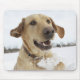 Labrador-hämtning som hoppar genom djupt snö musmatta