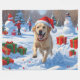 En glatt Labrador springa genom snölandskapet, med en röd julhatt. Den livliga vinterscenen avspeglar rasens lekfulla energi, lojalitet och varma personlighet samtidigt som man firar julhelgens festliga anda. En hjärteformad konstruktion fylld med säsong charm.