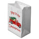 Labrador hämtar hundar i ett återkallat pickupt lastbil med grönt Julgran på rustiskt välluktat trä. Snowflake overlay. Text kan redigeras eller tas bort.
