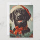 Fira säsongen med varmt önskemål och lite hårig charm! Julkortet innehåller en förtjusande svart Labrador som donerar en festlig julhatt, redo att sprida glädje och glädje. Den lekande bilden fångar helgdagarnas anda och påminner oss om det enkla nöjet och det ovillkorliga kärlek som våra fyralegerade vänner för med sig. säsongens glädje med det här hjärtslitkortet, perfekt för att skicka leenden till vänner och familj.