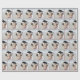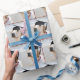 A Labrador retriever wearing a black graduation cap with a tassel and a red collar on a beach.