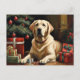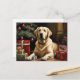 Labrador Retriever hemma vid den dekorerade julgranen.