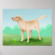 En gult labrador-hämtare och hans boll, en målning av djurartist, Carolyn McFann.