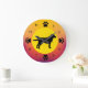 Hundägare och hundälskare kommer att åtnjuta denna färgstarka utformning med en silhuett från Labrador Retriever och tass avtryck som representerar siffrorna på klockan ansikte, med en bakgrund av färg av orangar, och .
