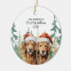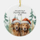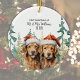 Ägare till nya lykta hundälskare/guldladuer kan fira sin första jul gift med den söta "Labrador Retrievers Couple Monogram Namn jul Ceramic Ornament". Anpassa detta genom att ge parets gifta namn och giftermål år. Texten är redigerbar så att all text kan ändras efter behov. Utformningen har ett toppen-ljuvligt par av berömvärda Labrador Retriever hundar med röd och vit tomthattar. De ställs mot bakgrund av gräs träd i grönt och guld. En roligt och ovanlig gåva till ett hund-älskande par som firar sin första julgift.