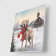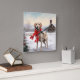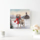 Mitt i en vintersaga njuter en lekfull hund en snöig julmorgon och lämnar efter sig bedårande tassavtryck i den glittrande snön. Deras glädje och nyfikenhet tillför värme till den förtrollande högtidsscenen och gör den verkligt magisk.