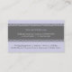En look på den lacy kantade panelen på denna kort och den påstår precis elegans. Detta är ett mångsidigt kort som kan fungera för händelseplanners, brud- konsulenter, seamstresses eller någon affär med en sofistikerad väderkorn. En blek lila panel som kantas med frivoliteter, markerar affärsnamn mot kolgrått. Panelen behandlas motsatsen långt på det omvänt som markerar vila av informationen om affären. Tillgängligt i omväxlande färger med att matcha produkter.