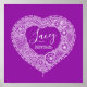 Konstnärlig affisch med vit spets hjärta perfekt för en flickas sovrum eller lekrum. Anpassa med eget namn och namn betydelse för en verkligt personlig touch i ditt barns sovrum eller barnkammare, detta exempel är för namnet Lacey Snygg fläta, chic, stilfull & självsäker. Söt affisch utskrift perfekt som gåva till en ny bebis eller dop eller flickas födelsedag bakgrundsfärg kan ändras om det behövs för närvarande lila. © unik bläckkonst design av Sarah Trett. www.sarahtrett.com för www.mylittleeden.com